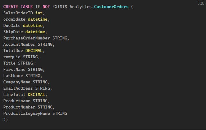 CALL Analytics.InsertCustomerOrders();This line executes the stored procedure in Snowflake called InsertCustomerOrders that we created earlier.